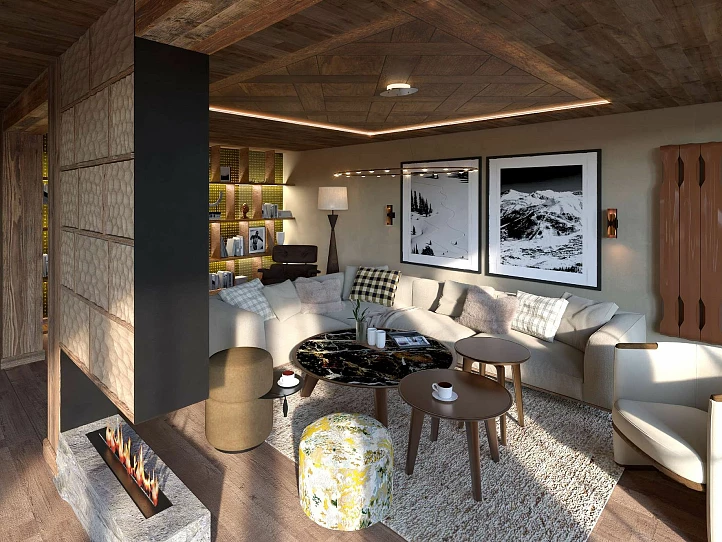 Rénovée par un promoteur local renommé, la façade s'harmonisera avec l'environnement tandis que les intérieurs seront rénovés dans un style alpin chaleureux, avec du bois vieilli, du parquet et de grandes fenêtres pour maximiser la lumière naturelle.