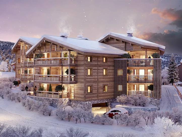 La résidence Hoani marie harmonieusement le charme authentique des chalets de montagne au confort contemporain. Nichée à flanc de montagne, elle se distingue par sa magnifique façade en pierre locale et ses boiseries patinées par le temps, sublimées par des gouttières en cuivre. Les appartements, parfaitement agencés, s'étendent de 64 m² à 142 m², certains proposant des configurations en duplex. Chaque logement bénéficie d'un chauffage par le sol, de poutres et murs en vieux bois, de parquet en chêne massif et de cuisines entièrement équipées.