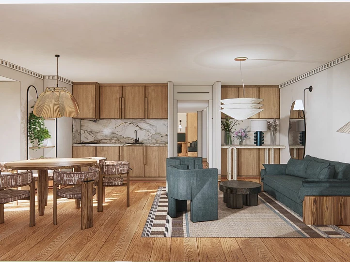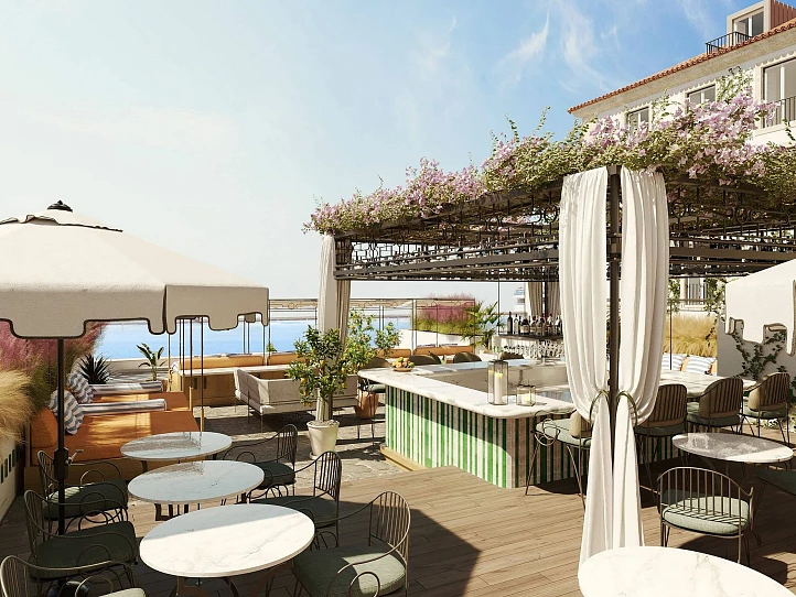 L'Alfama Club se compose de trois bâtiments historiques datant de la reconstruction de la ville après le séisme de 1755. Reflétant l'architecture traditionnelle des maisons de ville lisboètes, deux bâtiments se dressent avec élégance, tandis que le troisième, un ancien entrepôt, apporte une touche de charme industriel. Le projet de réhabilitation respectueux préserve les façades pombalines et le patrimoine maritime. La conception du cabinet primé Avroko intègre des matériaux locaux, mettant l'accent sur la fluidité entre espaces intérieurs et extérieurs et une élégance décontractée. Des studios aux appartements de trois chambres, les intérieurs allient les exigences de la vie moderne aux espaces communs, comprenant un jardin intérieur et une piscine extérieure aménagée en terrasse.