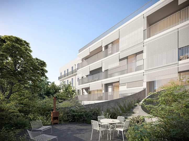Cette résidence propose des appartements du T2 au T4 avec des espaces de vie généreux et des cuisines inondées de lumière naturelle. Les appartements en rez-de-jardin bénéficient de jardins privatifs de plus de 100 m², tandis que les étages supérieurs disposent de vastes vérandas offrant une vue dégagée sur le jardin et la rue. Les intérieurs sont agrémentés de parquets en bois naturel et de matériaux nobles, conçus pour allier confort et élégance. Les résidents profitent d'un parking souterrain privatif.