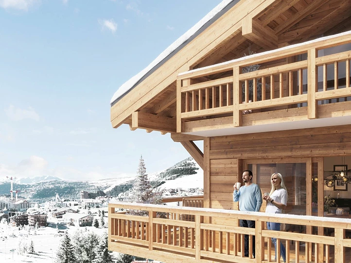 Cette résidence d'exception comprend 24 appartements conçus avec le plus grand soin, offrant chacun une vue panoramique plein sud sur les massifs environnants. Destinée à une clientèle exigeante en quête d'un art de vivre alpin raffiné, la résidence propose des appartements allant du chaleureux T2 jusqu'aux somptueux penthouses de 5 chambres. Chaque logement dispose de généreuses terrasses, idéales pour contempler le panorama majestueux. Les résidents bénéficient également de casiers à skis équipés de sèche-chaussures, d'un parking souterrain et d'un local à vélos sécurisé.