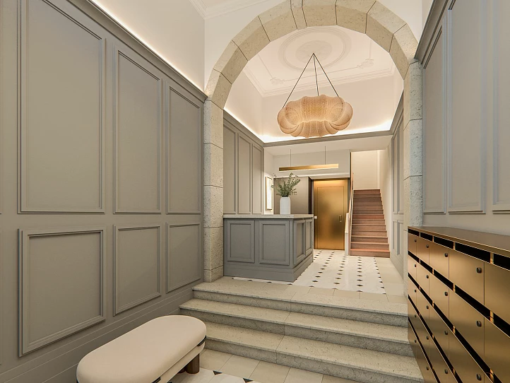 La Résidence Santos se déploie sur cinq niveaux et propose 35 appartements d'une à deux chambres. Conçu avec le plus grand soin, ce projet marie harmonieusement le caractère patrimonial du bâtiment avec des technologies de construction parasismiques modernes, une isolation phonique performante, un confort thermique optimal et une haute efficacité énergétique. Ces appartements, destinés aux voyageurs contemporains les plus exigeants, respectent les standards d'excellence d'Ando Living en alliant finitions haut de gamme et atmosphère chaleureuse d'un véritable foyer. Chaque appartement dispose d'une cuisine entièrement équipée, d'un espace de vie et de travail généreux, et bénéficie de services complets à la demande, incluant un service de conciergerie, la sécurité 24h/24 et une réception permanente. De larges baies vitrées inondent les intérieurs de lumière naturelle, tandis que le design raffiné marie les détails architecturaux d'origine avec des tons neutres et des touches contrastées, créant ainsi une ambiance d'élégance sereine.
