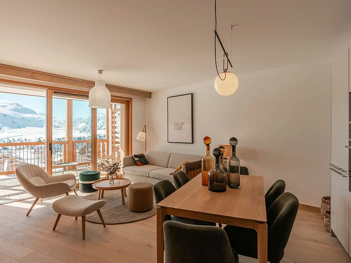 Nestled into three charming chalets, these Alpe d'Huez properties offer a range of one to four-bedroom apartments, some with a bunk bedroom for children. Each residence boasts outdoor living space, allowing you to take in the breathtaking views of the village, snow front, and the Ecrins mountain range. The apartments feature underfloor heating, parquet flooring, and fully equipped kitchens and bathrooms. Enjoy access to a gym, indoor pool, spa, and concierge service. Underground parking, ski locker, and private cellar are included. The residences have just been delivered and are ready for the upcoming winter.