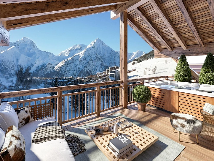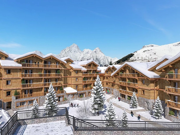 This ski-in ski-out project is literally right on the slopes and enjoys an elevated & sunny position with panoramic views over the mountains and the resort. In addition, it has no rental obligation and is only 3-min walk from the centre, making it probably the best project in the resort.