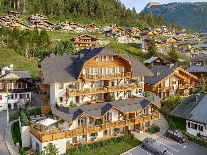 Set to be delivered in Spring 2025, this brand-new real estate development in Morzine boasts a great location away from the crowds, with easy access to the lifts and the centre of the resort. Set on a hillside overlooking the village, the project will be situated on the sunny side of the resort offering future owners the best exposition in the area with open views over Pleney and Pointe de Nyon.