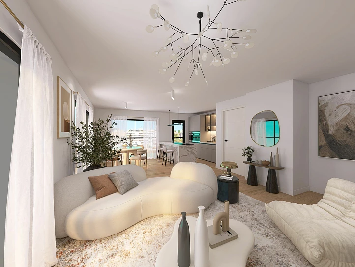 Lady Dayana blends contemporary architecture with natural surroundings. Each apartment, ranging from two to four rooms, features spacious layouts, outdoor terraces or balconies, and quality. Upper-level units boast private jacuzzis. Communal gardens, landscaped with seasonal flora, offer serene green spaces. The building is secured with advanced access systems and designed for resident comfort.