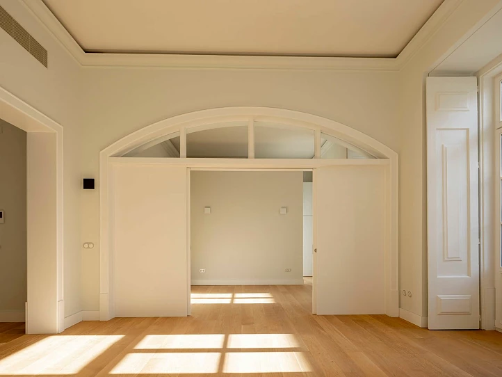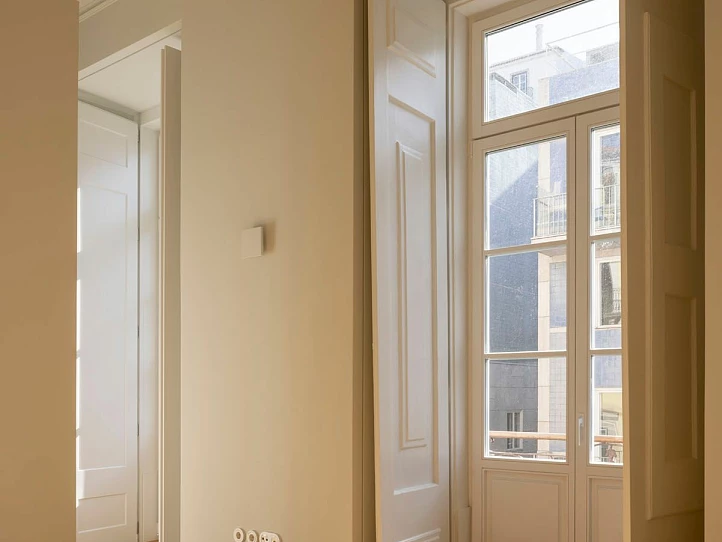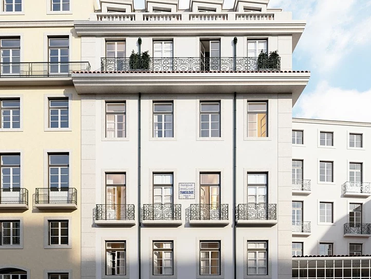 Discover a stunning collection of 14 residences, ranging from optimised studios to spacious three-bedroom apartments, across five floors. The building's original Pombaline facade, complete with traditional Lioz stonework and filigree balconies, has been preserved to respect its heritage. Inside, contemporary design blends seamlessly with original elements such as colourful azulejos, moulded ceilings and wooden window frames. Enjoy natural light flooding in through high ceilings, arches, folding doors and glasswork. Most apartments boast outdoor living space, with balconies or winter gardens, and upper floors offer breathtaking views of the Tagus river. Adaptable to your lifestyle, many apartments have extra rooms for a home office or extra sleeping space. Experience a warm and welcoming ambience with wide-planked hardwood flooring throughout, open-plan living areas with sleek, integrated kitchens equipped with high-quality appliances, and ample storage space in the bedrooms with built-in wardrobes and en-suite bathrooms featuring heated walls and marble wash basins.