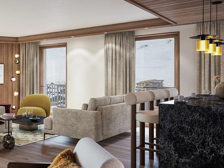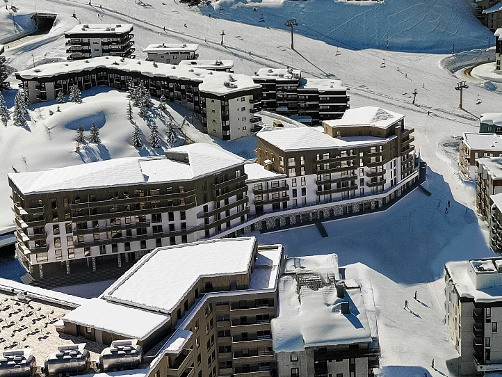 O empreendimento é constituído por 19 apartamentos com áreas entre 46 e 101 m², todos com acabamentos de excelência realizados por um promotor de renome. Os residentes beneficiam de acesso direto às pistas, cacifos privados para equipamento de ski e estacionamento subterrâneo. As infraestruturas incluem uma área de bem-estar com 1.900 m² que dispõe de piscina, sauna, banho turco, sala de neve e ginásio. A oferta gastronómica inclui um restaurante de especialidades da Saboia, um restaurante italiano e um bar panorâmico na cobertura. O clube infantil e a loja de ski complementam a oferta, tornando o empreendimento ainda mais atrativo para famílias.