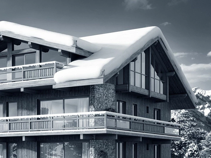 O projeto contempla a adição de um novo piso e a criação de uma penthouse exclusiva com 152 m², concebida para corresponder aos mais elevados padrões de luxo. Esta residência dispõe de uma disposição ampla com 4 quartos em suite, uma espaçosa área de estar em open space com pés-direitos duplos, e uma cozinha totalmente equipada, ideal para receber. As varandas generosas prolongam o espaço habitacional para o exterior, oferecendo vistas deslumbrantes sobre as montanhas e uma perfeita integração com o ambiente alpino.