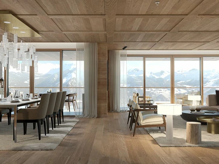 Ocupando a parte superior do Six Senses Crans-Montana, este lançamento conta com 17 residências deslumbrantes, sendo que 13 delas atendem às restrições de metragem impostas aos compradores internacionais - uma raridade na Suíça. Há também quatro coberturas maiores disponíveis exclusivamente para residentes suíços.