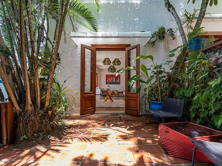 Tre av de fyra sovrummen, inklusive en master suite som elegant smälter samman med utomhusterrassen och poolområdet, är omsorgsfullt utformade för att erbjuda högsta komfort samtidigt som husets historiska karaktär bevaras. Den frodiga och täta trädgården fungerar som en naturlig avskärmning och skapar en rofylld oas, något som är unikt i en pulserande storstad som Rio de Janeiro. Denna fastighet erbjuder inte bara ett exklusivt boende utan även en del av den brasilianska musikhistorien och Bossa Nova-eran.