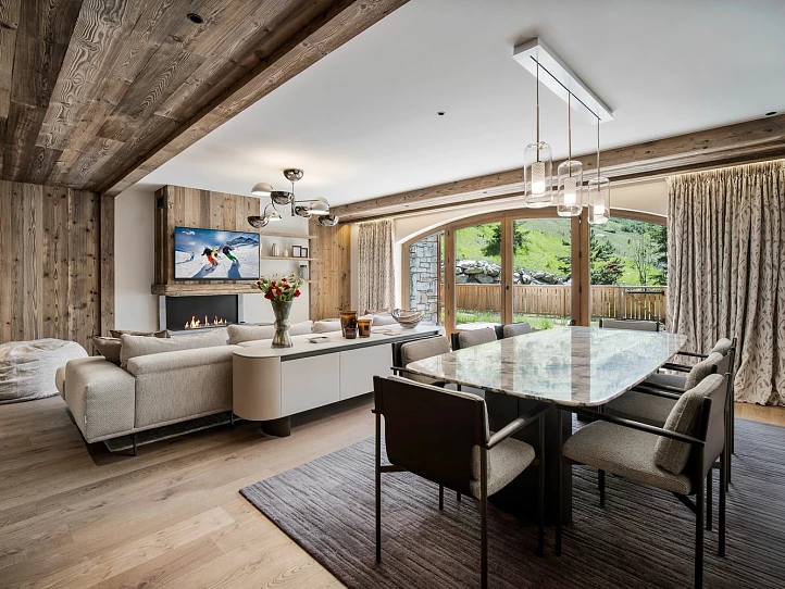 Vårt projekt omfattar både nybyggda och renoverade lägenheter och chalets, samtliga med exklusiv finish där endast de finaste materialen har använts. Interiörerna kombinerar modern komfort med traditionell charm genom parkettgolv, träpanel på väggarna och öppna sällskapsytor med inbjudande eldstäder. De stora fönstren fyller bostäderna med naturligt ljus och erbjuder en hänförande utsikt över den natursköna Epaule du Manchet-dalen.