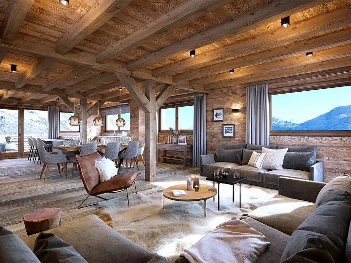 I ett lugnt hörn av Combloux ligger dessa vackra chalets som erbjuder en genuin alpupplevelse. Med en magnifik 180° panoramautsikt över Chaine des Fiz och Mont Blanc möts här stillhet och storslagenhet. Endast 5 minuters bilresa från Princesse-gondolen har du det prestigefyllda skidområdet Megeve precis utanför dörren.