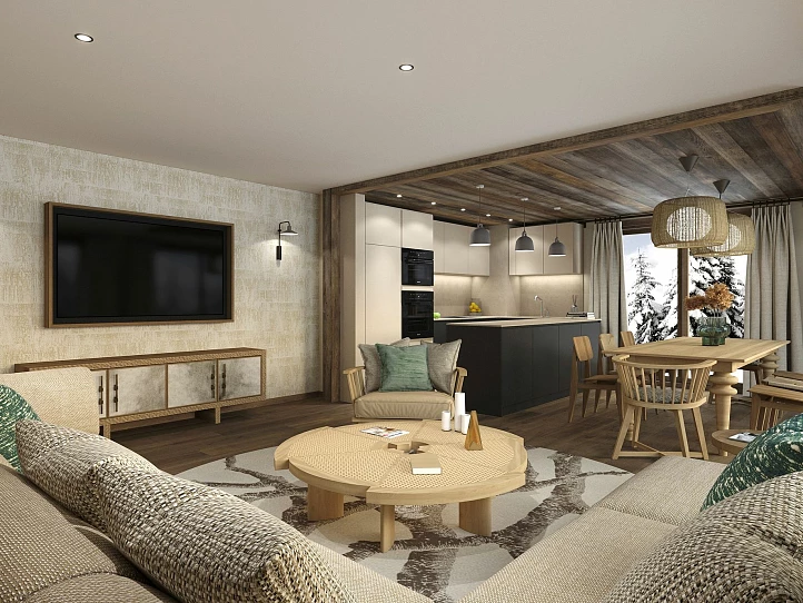 Upptäck en exklusiv alpin livsstil i våra magnifika bostäder med två till sex sovrum till salu i Méribel. Varje lägenhet är elegant inredd med ekparkett och väggar klädda i granpanel som skapar en varm och välkomnande atmosfär. Köken är utrustade med förstklassiga vitvaror från Bosch, Samsung eller Siemens, medan badrummen pryds av exklusivt kakel och sanitetsporslin från Duravit och Hans Grohe. För ultimat avkoppling erbjuder vissa lägenheter även ångbastu och en mysig öppen spis.