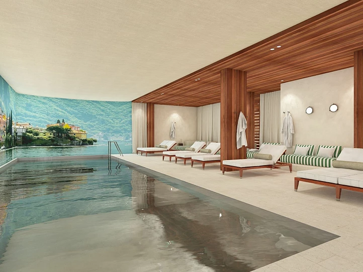 Detta nybyggda projekt består av 43 exklusiva lägenheter, där varje bostad är genomtänkt utformad med generösa planlösningar och stora uteplatser. De stora fönsterpartierna från golv till tak släpper in ett överflödande naturligt ljus och erbjuder en betagande utsikt över berg och skidbackar. Arkitekturen harmonierar perfekt med omgivningen genom sina sluttande tak och användning av traditionella alpina material som natursten, trä och kalkputs. De boende har tillgång till ett välutrusterat skidrum på 82 kvm med individuella skidskåp och värmeställ för pjäxor, samt en förstklassig spa- och wellnessavdelning med pool, bastu, hamam, gym och massagerum. Fastigheten inrymmer även ett hotell med 31 rum samt två butiker i markplan, vilket ytterligare höjer bekvämligheten och attraktiviteten.