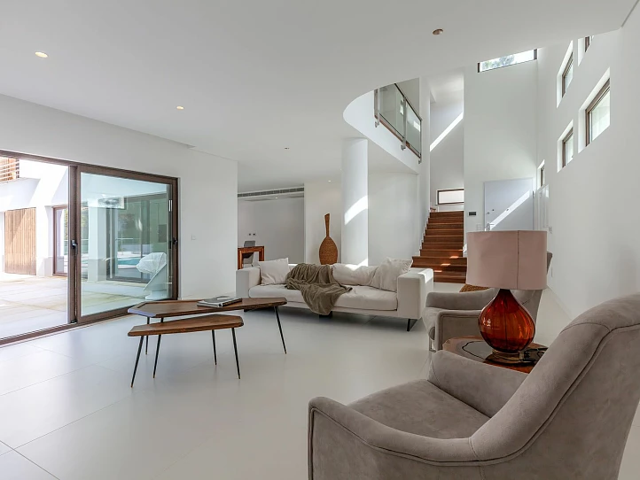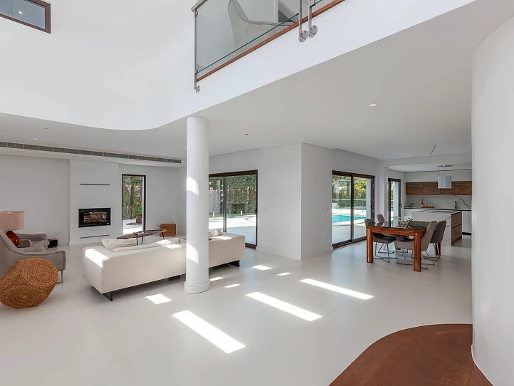 Denna exklusiva villa om 306 kvm är belägen på en välplanerad tomt om 1 249 kvm och har genomtänkt planlösning som maximerar ljusinsläpp, rymd och boendekomfort. De stora fönsterpartierna suddar ut gränsen mellan ute och inne, samtidigt som villans eleganta arkitektur säkerställer både integritet och bekvämlighet. På entréplan finns ett generöst vardagsrum med matplats i öppen planlösning som elegant ansluter till den anlagda trädgården och poolen - perfekt för socialt umgänge. Här finns även ett modernt, fullt utrustat kök med skafferi, en separat svit, tvättstuga och garage.