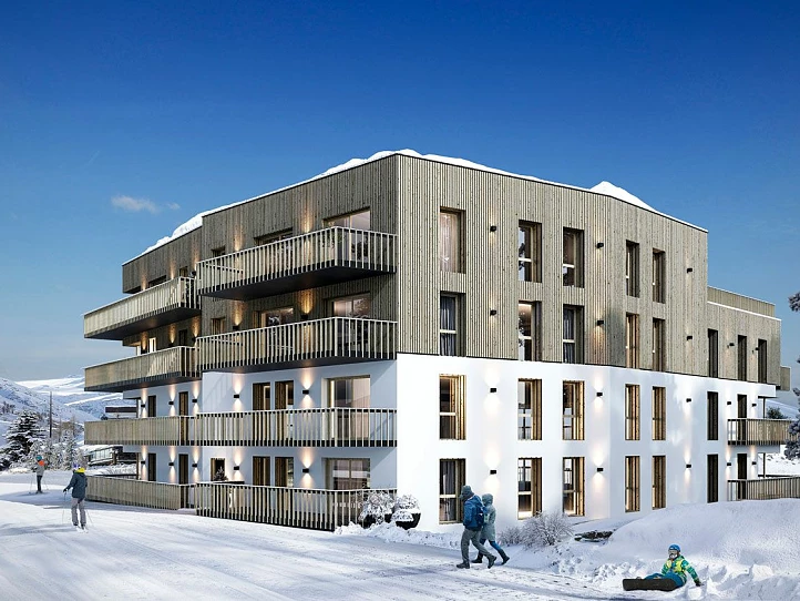Set at an altitude of 2100m in Tignes Le Lavachet, this residence is the cornerstone of a global rejuvenation project of the neighbourhood, with the creation of a brand-new ski slope and a new beginners’ area providing access to a new hotel, a restaurant, a bar and a ski school.