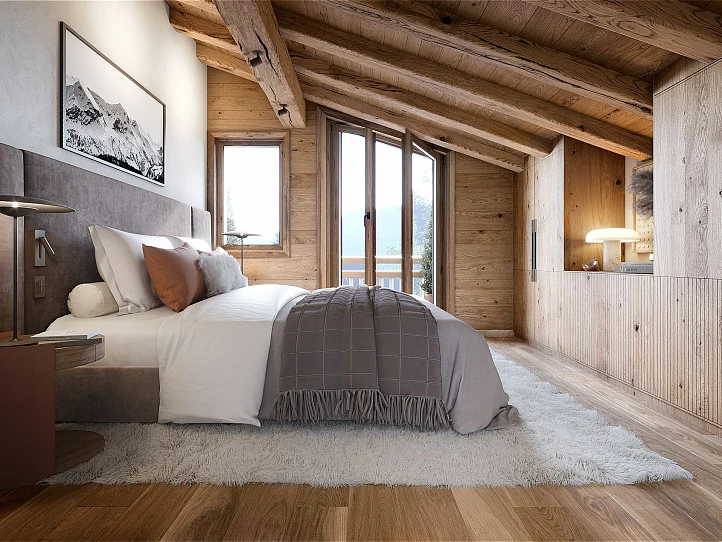 This chalet invites you to a warm and comfortable sanctuary. The property has an interior area of 290 sqm (400 sqm in total) and hosts four comfortable ensuite bedrooms. Unwind in the wellness area, enjoy a quiet workout in the gym, or share moments in the wine cellar with its own bar. Relish cinematic evenings in the home cinema. The chalet boasts a spacious open-plan living area with a cathedral ceiling, leading gracefully to a 34 sqm south-west-facing terrace - an ideal space for cherished gatherings. The property also features a garage.