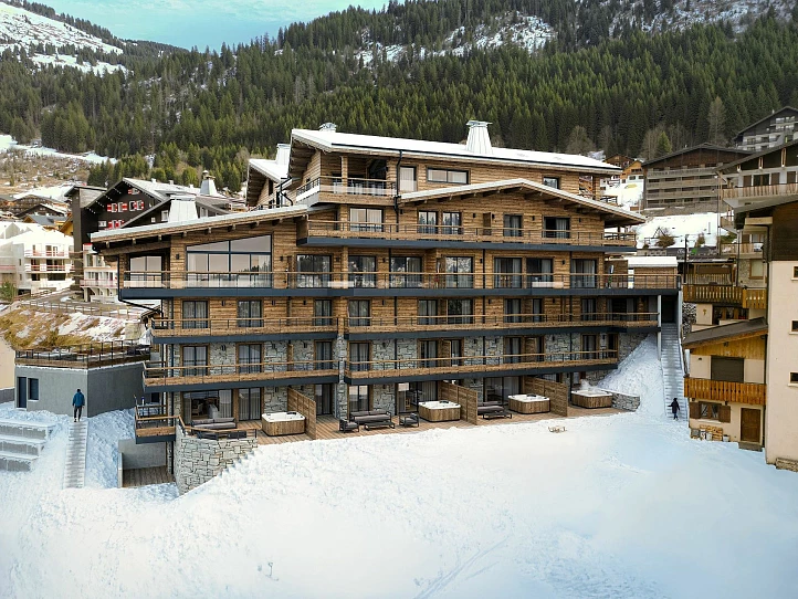 In the centre of Châtel, this new-build collection brings fifteen residences to one of the village’s most sought-after addresses. Conceived by a respected local developer, the scheme combines thoughtful architecture with a south-facing location, a rarity in this setting. Ranging from two to six bedrooms, the homes are designed for owners who value immediate access to lifts, shops and year-round amenities without compromising on space or outlook.