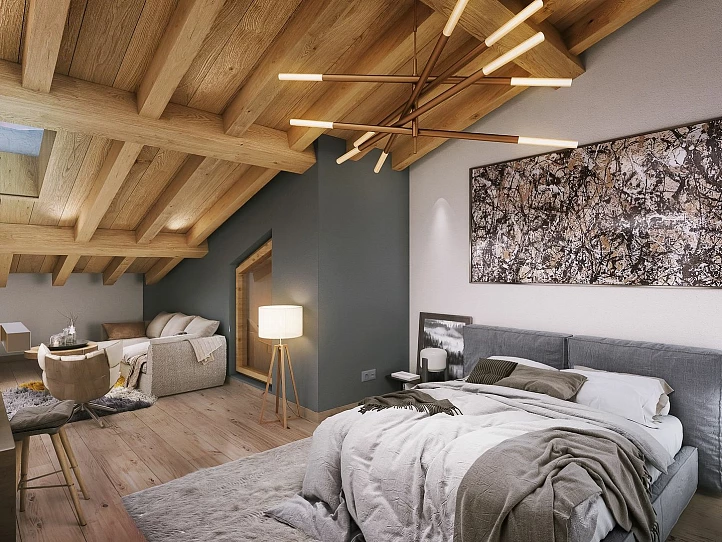 This exclusive 20-unit development features units ranging from 2 to 5 bedrooms, each with additional cabin space. The property boasts high-end finishes, including fully-equipped kitchens and luxury touches throughout. Expansive outdoor areas offer spectacular views in every direction, while underground parking, private cellars, and ski lockers provide added convenience. With construction already underway, this residence combines modern living with the charm of the Alps, set to be completed by Q2 2026.