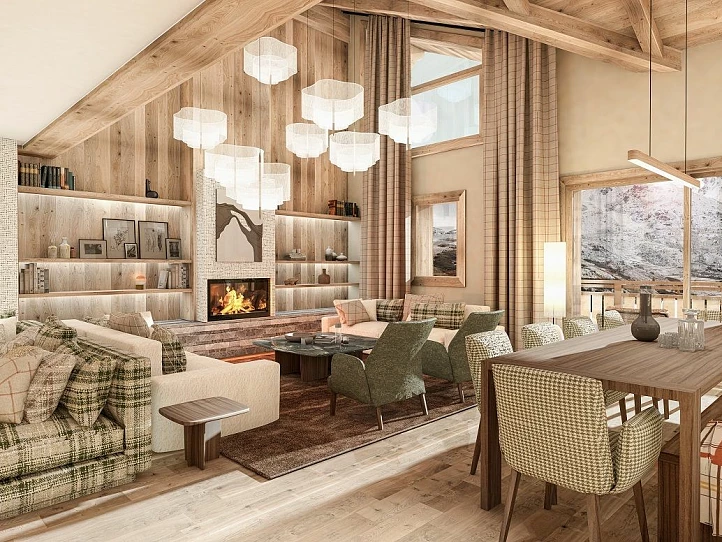 The residence offers 1 to 6-bedroom apartments and penthouses, ranging from 33 to 209 sqm. All units boast generous outdoor spaces and open views over the slopes or surrounding forest. Owners benefit from hotel-style services, including a wellness area with pool, sauna and gym, plus a bar, restaurant and cinema room. Each apartment includes a ski locker, cellar and underground parking.