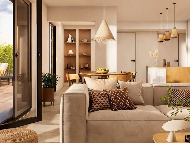 The communal areas are stylish and secure, with lacquered steel entrance doors, decorative tiled floors, motion-sensor lighting, and modern 8-person lifts. Residents will also benefit from a large outdoor swimming pool, Mediterranean-style gardens and bicycle storage within the building.
