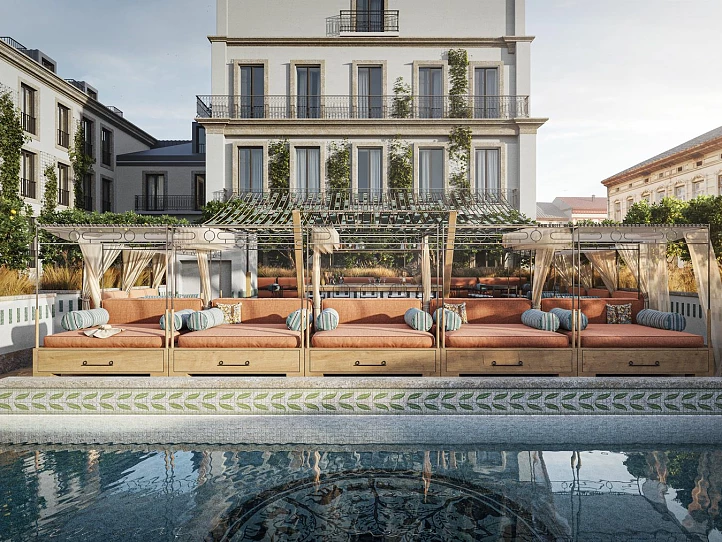 O Alfama Club é composto por três edifícios históricos que datam da reconstrução da cidade após o terremoto de 1755. Refletindo a arquitetura típica dos palacetes lisboetas, dois edifícios apresentam-se altos e elegantes, enquanto o terceiro, um antigo armazém, adiciona um toque de charme industrial. O projeto de reabilitação cuidadoso preserva as fachadas pombalinas e o patrimônio marítimo. O design do premiado escritório Avroko incorpora materiais locais, com ênfase na integração entre ambientes internos e externos e na elegância despojada. Dos estúdios aos apartamentos de três quartos, os interiores harmonizam as necessidades da vida contemporânea com espaços de convivência, incluindo um jardim no pátio interno e uma piscina ao ar livre com terraço.