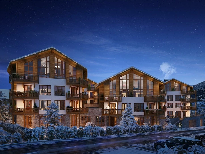 Expression erbjuder 40 exklusiva lägenheter fördelade på fem nybyggda hus som harmoniskt smälter in i den natursköna omgivningen. De vita fasaderna i lantlig stil med träpanel på de övre våningarna och natursten i bottenvåningen, tillsammans med de sluttande taken, skapar en genuint alpin karaktär. Varje lägenhet har en egen terrass eller balkong där man kan njuta av områdets 300 soldagar per år och den spektakulära bergsutsikten. Interiören präglas av modern alpin design med trägolv, träpaneler och stora fönsterpartier som släpper in rikligt med dagsljus. Takvåningarna imponerar med dubbel takhöjd och panoramafönster från golv till tak. Det gemensamma spa-området med bastu och hammam erbjuder perfekt avkoppling efter en aktiv dag i skidbackarna.
