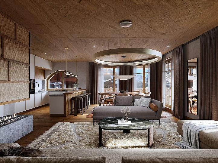 De 11 lägenheterna varierar mellan 42 och 376 kvm och omfattar ett till fem sovrum, samtliga med ett extra våningssängsrum – perfekt för familjer och gäster. Varje bostad har generösa balkonger eller terrasser, medan den imponerande takvåningen sträcker sig över hela översta våningen. Ytterligare bekvämligheter inkluderar underjordiskt garage, cykelrum, skidförråd, privata källare samt en välkomnande lobbylounger.