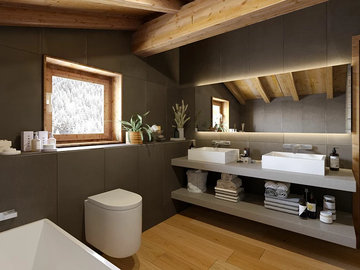 Kliv in i en alpin drömmiljö där parkettgolv, träpaneler och synliga takbjälkar skapar en varm och inbjudande atmosfär. Varje lägenhet har en rymlig balkong i söderläge - perfekt för att njuta av morgonkaffet medan man tar in den fantastiska utsikten över pisterna och dalen.