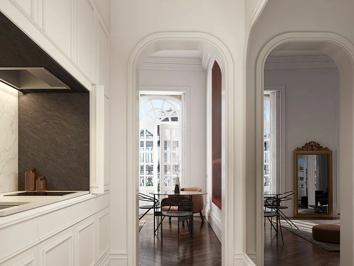 Dessa bostäder kombinerar moderna interiörer med exklusiva ytskikt, samtidigt som byggnadens ursprungliga charm bevaras genom vackert ornamenterade tak och genuina trägolv. Missa inte chansen att förvärva en av dessa exceptionella bostäder, inklusive de två spektakulära takvåningarna som finns till försäljning. Här finner du den perfekta balansen mellan samtida design och historisk charm i stadens hjärta.