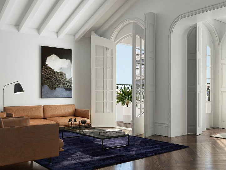 Dessa bostäder kombinerar moderna interiörer med exklusiva ytskikt, samtidigt som byggnadens ursprungliga charm har bevarats genom vackert detaljerade tak och genuina trägolv. Missa inte chansen att förvärva en av dessa exceptionella fastigheter, inklusive de två spektakulära takvåningarna som finns till försäljning. Här finner du den perfekta balansen mellan samtida design och historisk charm i stadens hjärta.